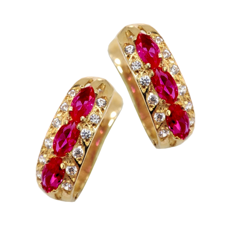 Gold earrings diamonds rubies ~1.95ct
