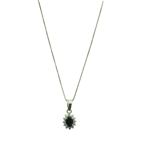 White gold necklace with a 0.25ct sapphire and 12 0.12ct diamonds