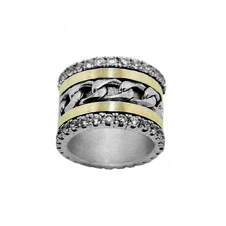 Aliança ouro 375Mls prata 925Mls rotativa anti-stress com zircónias brancas